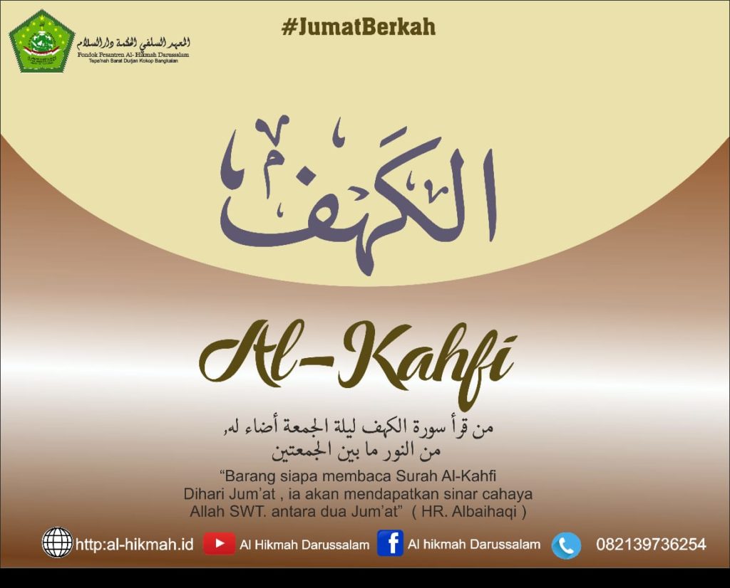 “Barangsiapa membaca Surah Al-Kahfi di hari Jumat, ia akan mendapat sinar cahaya dari Allah SWT Antara dua jumat.” (HR. Al Baihaqi)